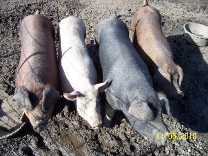 Some good looking Red Wattle/Duroc cross pigs having a romp in the field.
